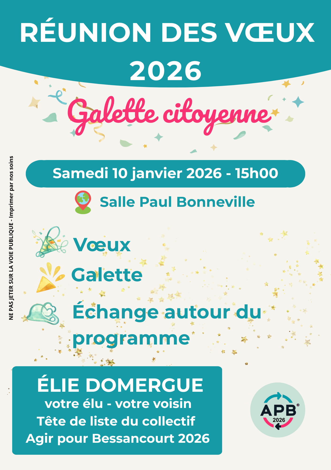Parce que nous croyons en une commune plus solidaire, plus verte et plus démocratique, Élie Domergue et l’équipe Agir pour Bessancourt 2026 vous invitent à une rencontre pour échanger sur notre projet et répondre à vos questions.